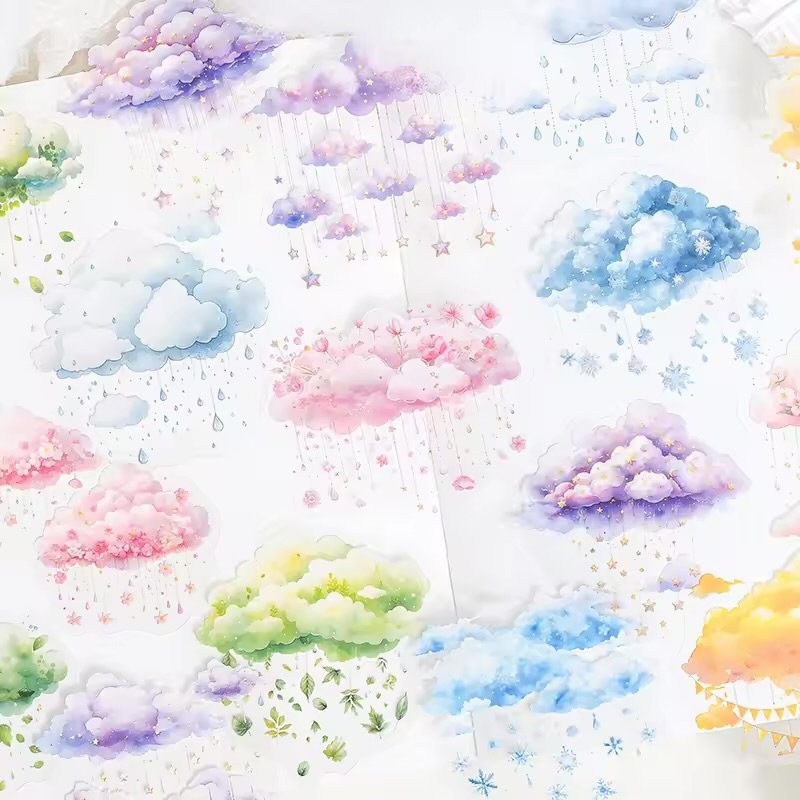 Float away into a world of pastel skies and whimsical clouds with the Dreams in the Clouds sticker series. Each sheet features soft, watercolor cloud designs in soothing colors like lavender, mint, and soft pink — perfect for adding a serene, dreamy touch to your journals, planners, or scrapbooks.