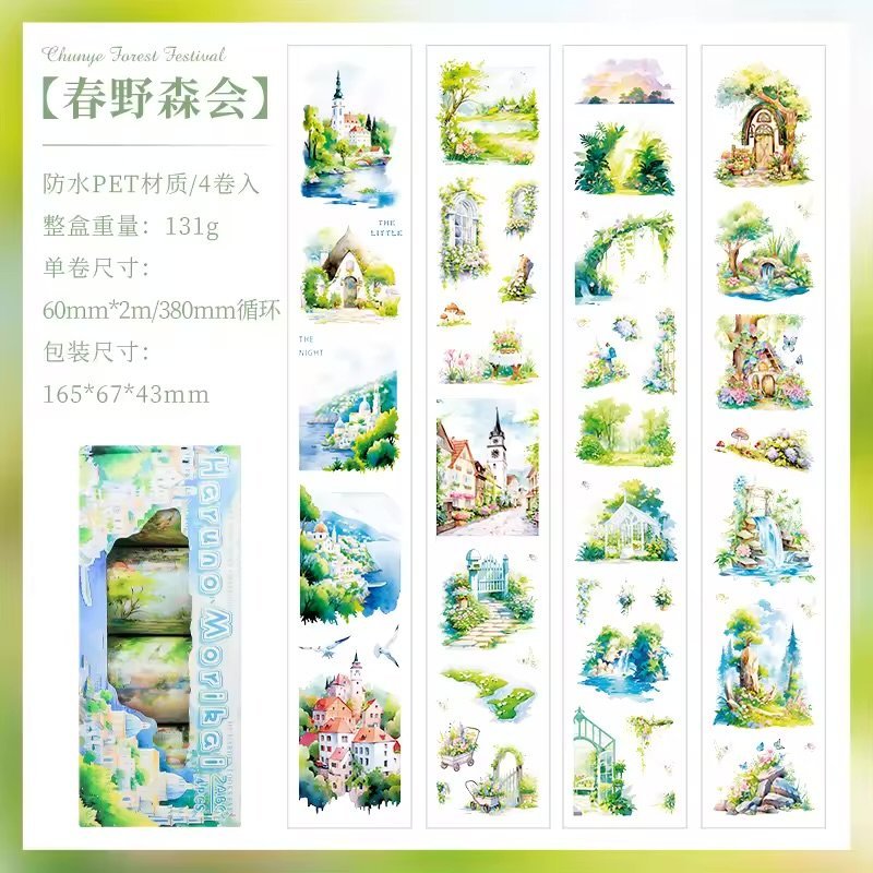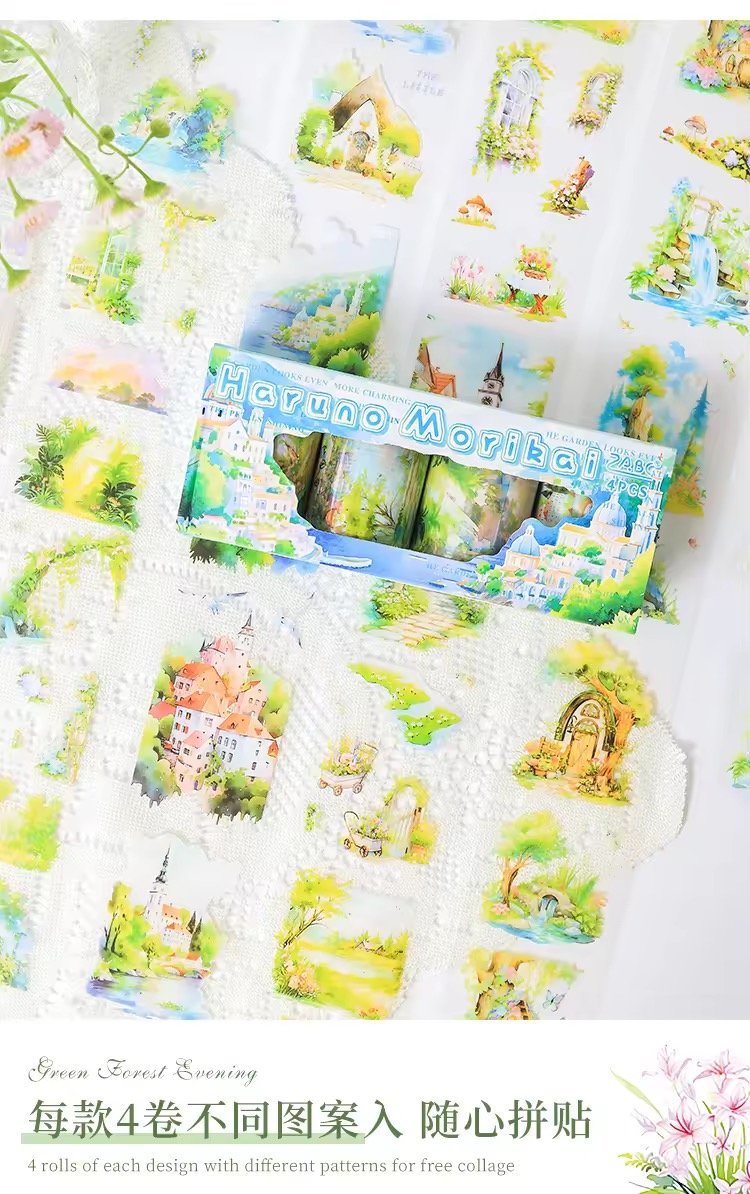 Step into a peaceful woodland escape with the Green Forest Evening washi tape series. Featuring rich forest scenes, calming greenery, and moody evening tones, these waterproof PET tapes are perfect for adding natureβs quiet beauty to your journals, scrapbooks, and craft projects.