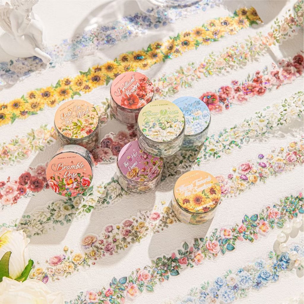 Like petals floating on a breeze, these PET tapes bring a gentle elegance to your journaling, scrapbooking, and creative projects. Inspired by soft florals and dreamy moments, each design feels like a quiet bloom of inspiration.