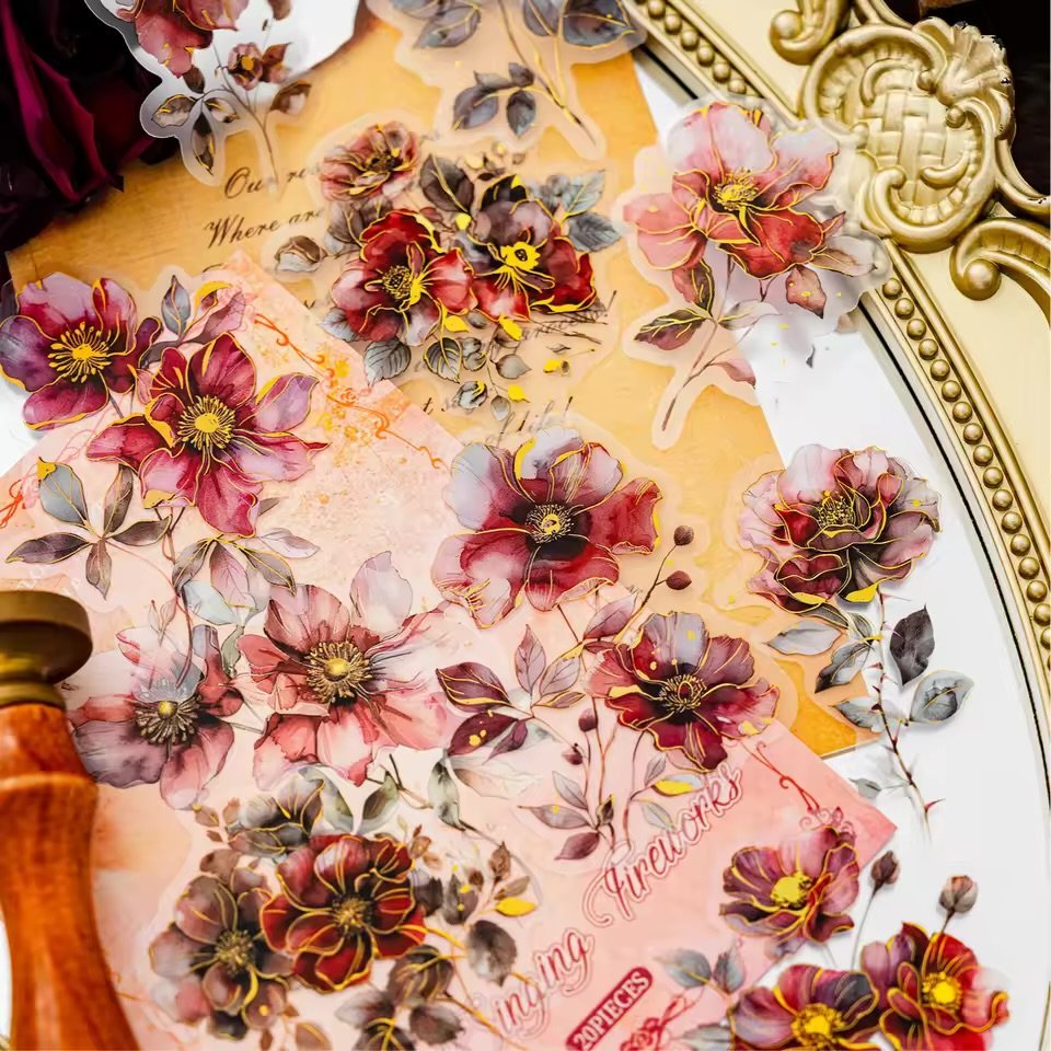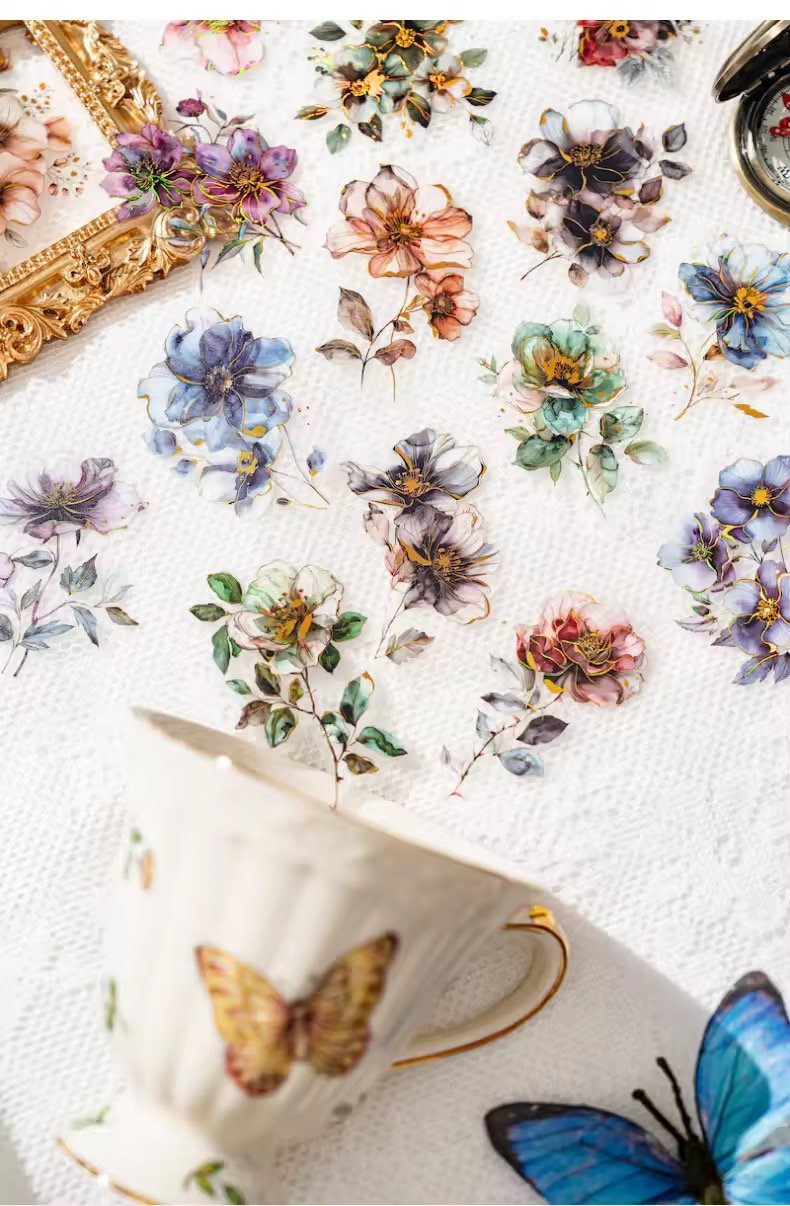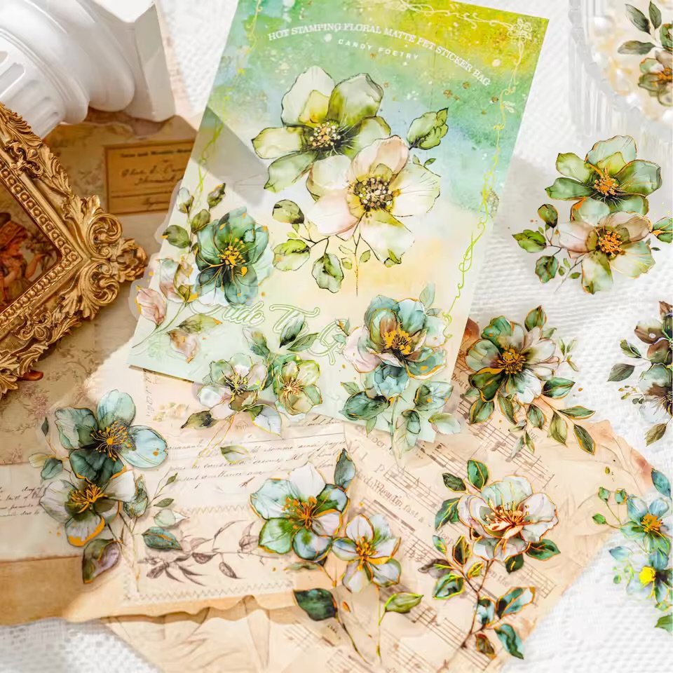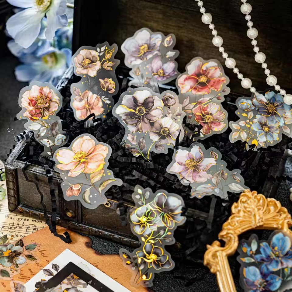 #FlowerStickers #RomanticDesigns #3DHotStamping #FoggyPetStickers #CreativeJournaling #VintageCharm #WatercolorArt #StationeryAddict #FloralInspiration #StickerMagic #ScrapbookDecor
